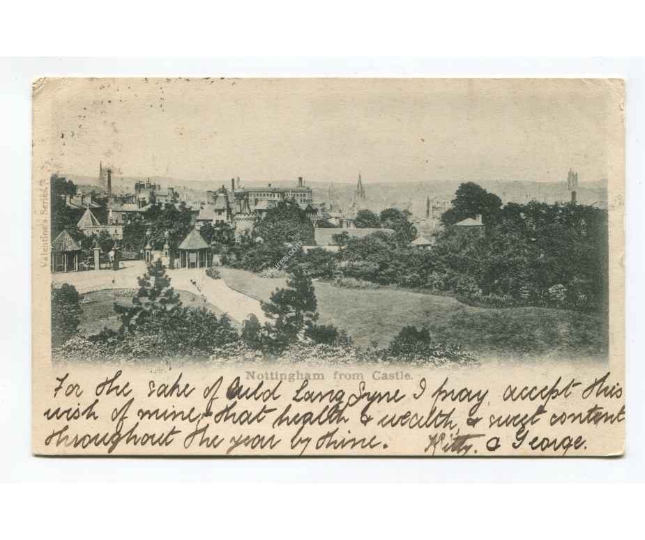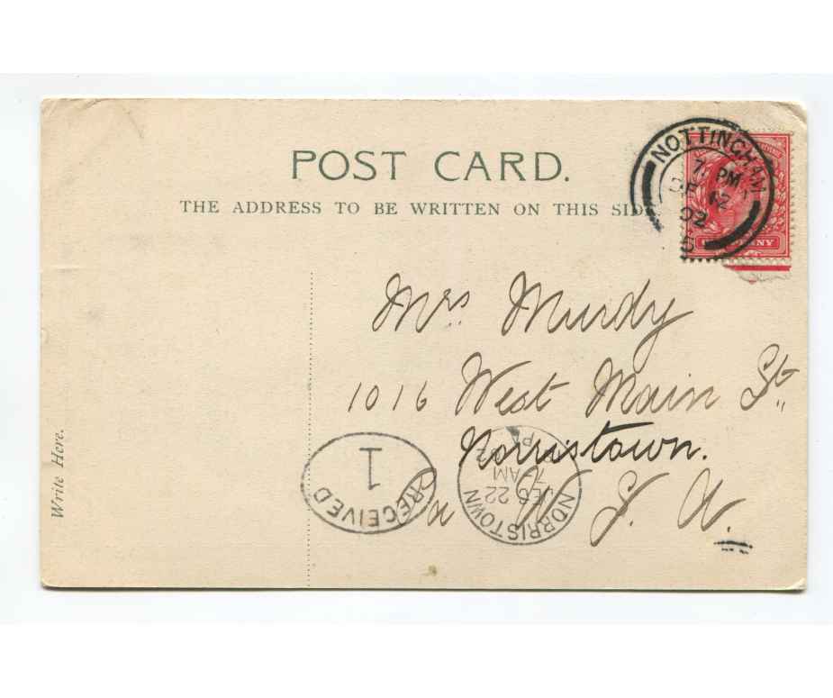 Condition - noticeable corner/edge wear, crease in corners and by both top corners, indentation mark by upper right edge, album impression marks around corners, writing and, marks on card front, soiling/marks