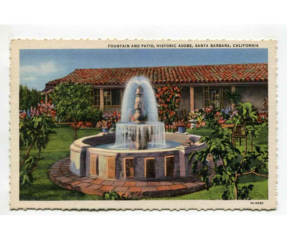 Fountain and Patio Historic Adobe Santa Barbara California postcard