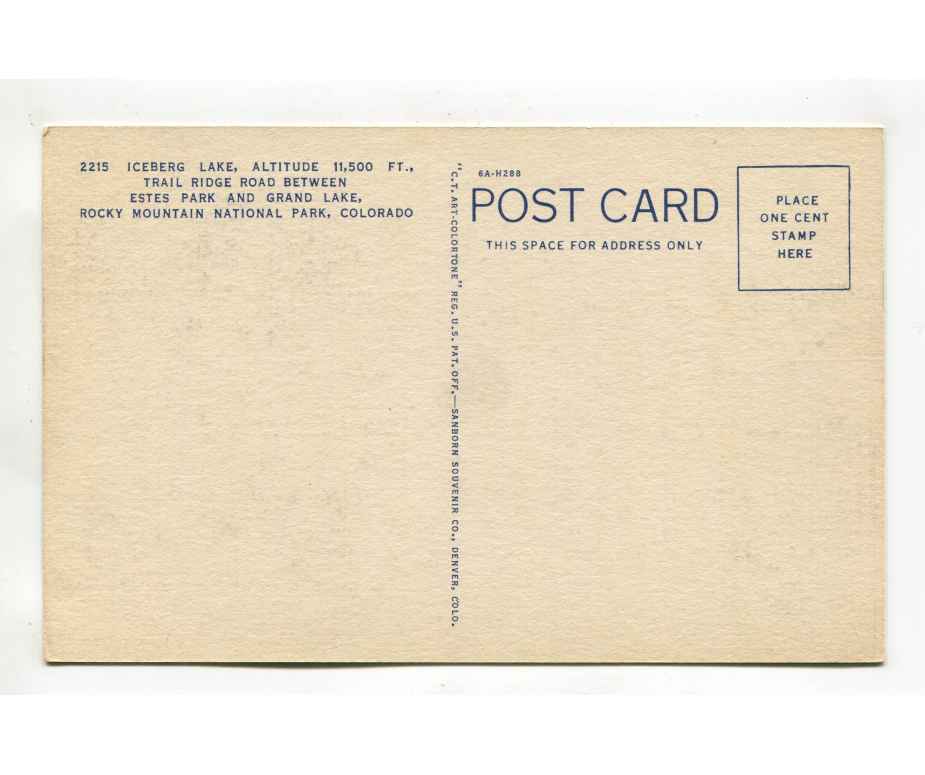 Iceberg Lake Trail Ridge Road between Estes Park and Grand Lake Rocky Mountain National Park Colorado postcard