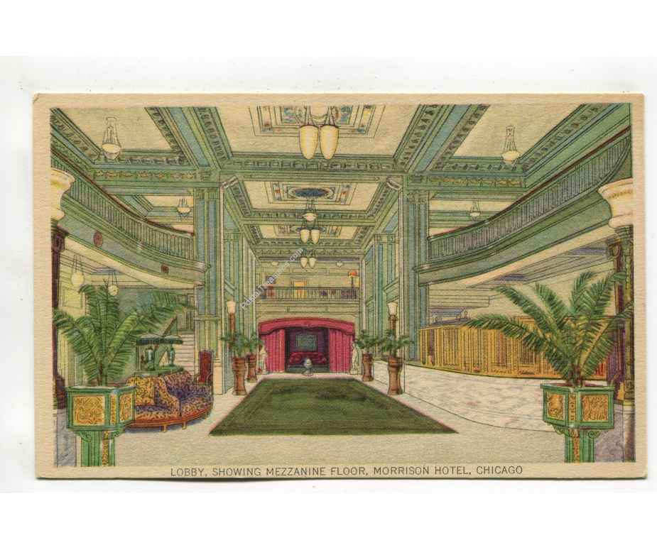 Lobby showing mezzanine floor Morrison Hotel Chicago postcard