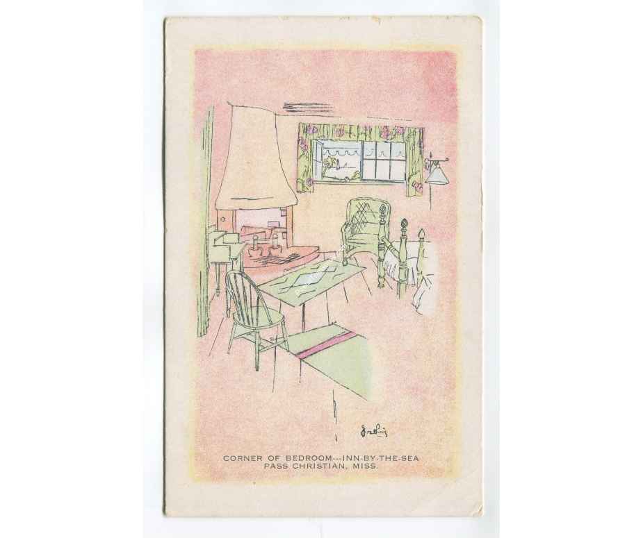 Corner of Bedroom Inn-by-the-Sea Pass Christian Mississippi postcard