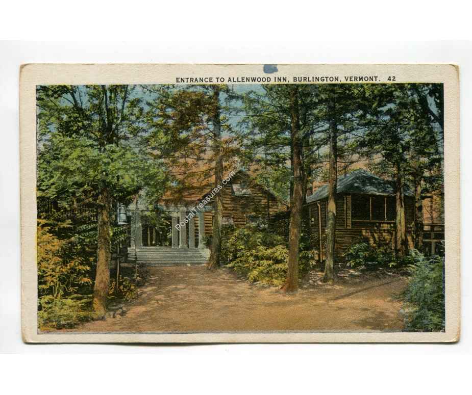 Entrance to Allenwood Inn Burlington Vermont postcard