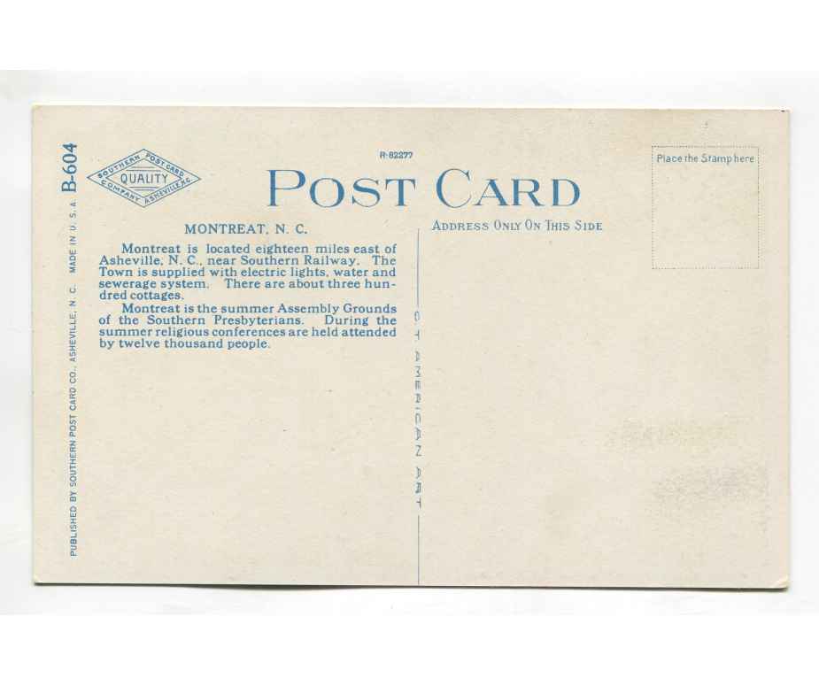 Panoramic nighttime scene of Montreat North Carolina from Chapman Home postcard Unused Condition - noticeable corner/edge wear, crease in corn..