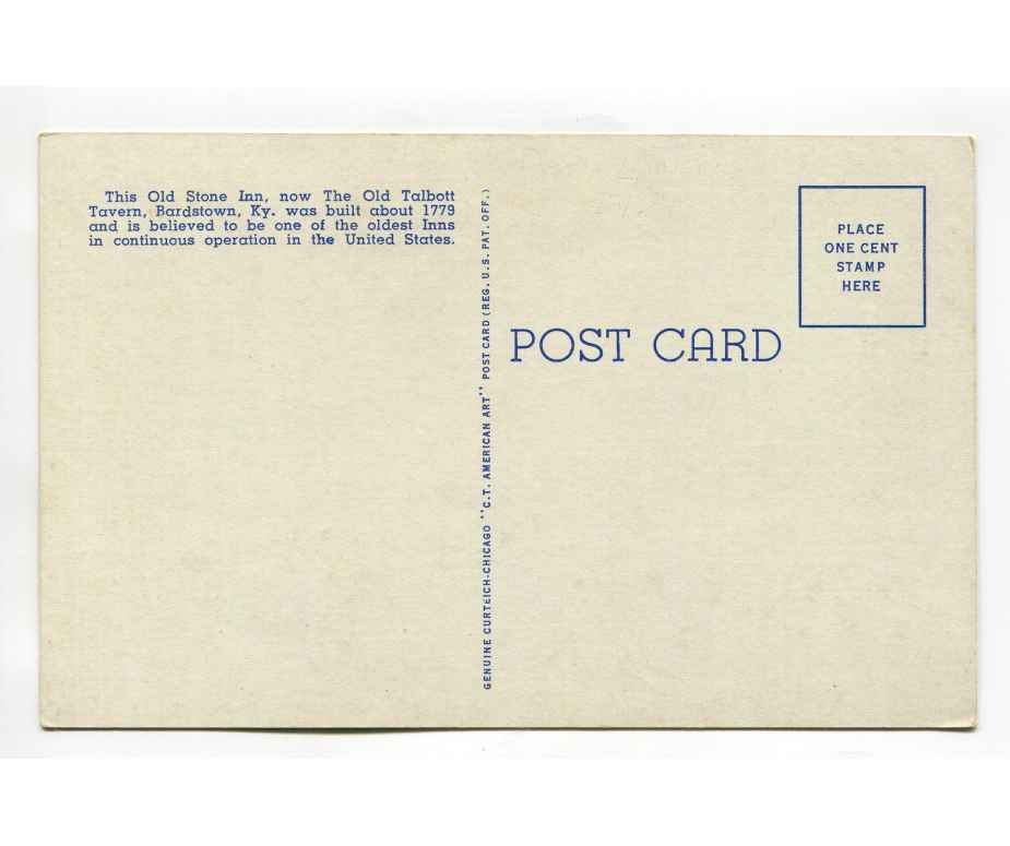 Old Stone Inn now the Talbott Tavern Bardstown Kentucky postcard