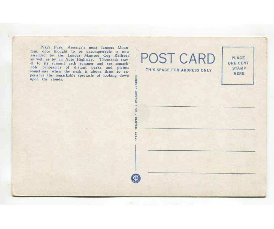 Above the Clouds on Pikes Peak Cog Road Pikes Peak Colorado postcard