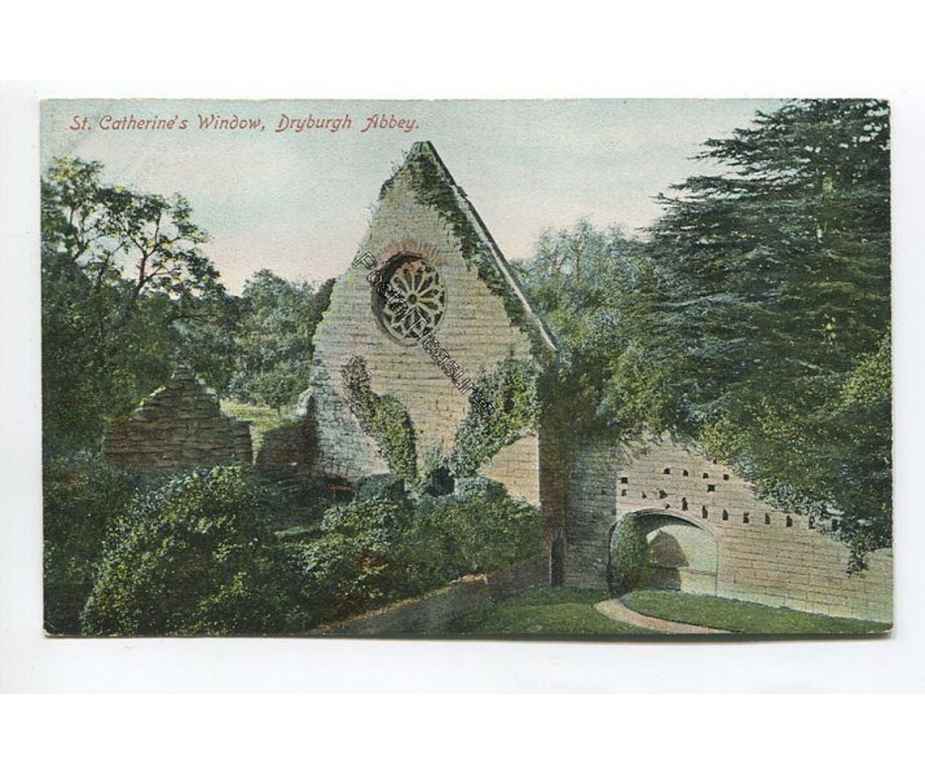 St Catherines Window Dryburgh Abbey postcard