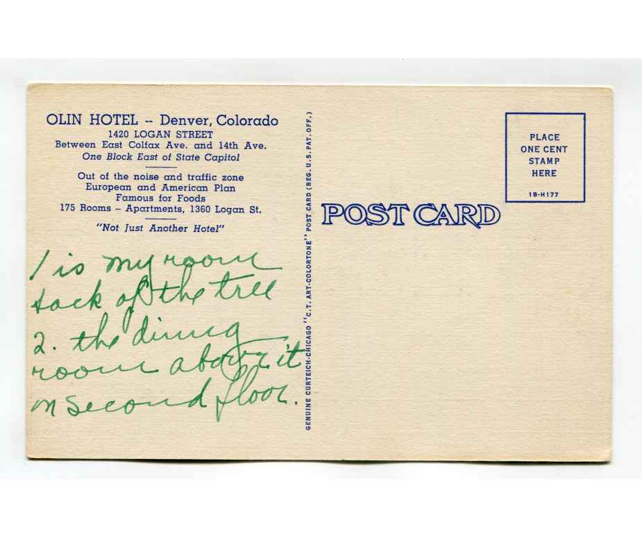 Olin Hotel 1420 Logan Street Denver Colorado postcard