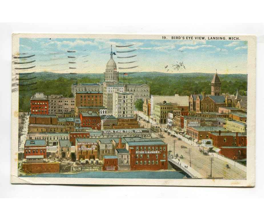 Birds Eye View Lansing Michigan postcard
