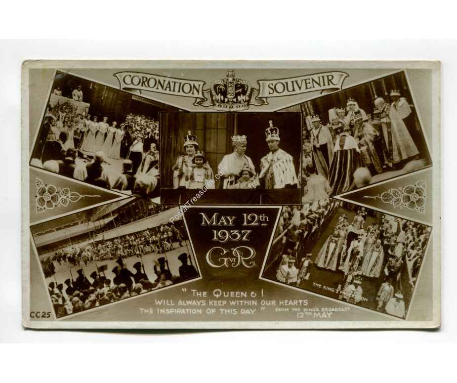 Souvenir of The Coronation May 12 1937 postcard Unused Condition - corner/edge wear, curl to card, soiling/marks ..