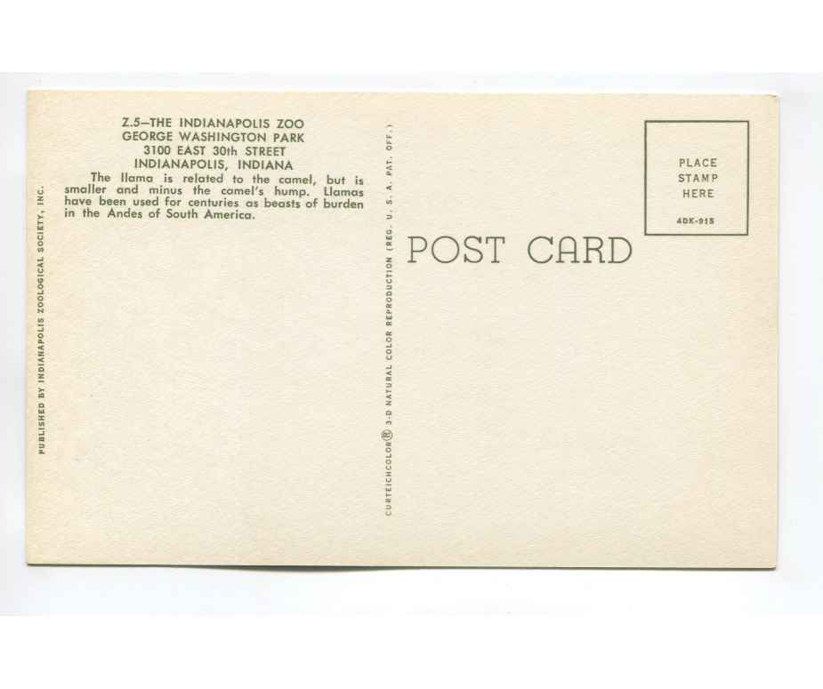 Llama Indianapolis Zoo George Washington Park Indianapolis Indiana postcard