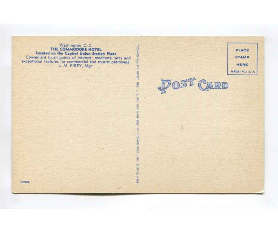 Hotel Commodore Union Station Plaza Washington DC postcard
